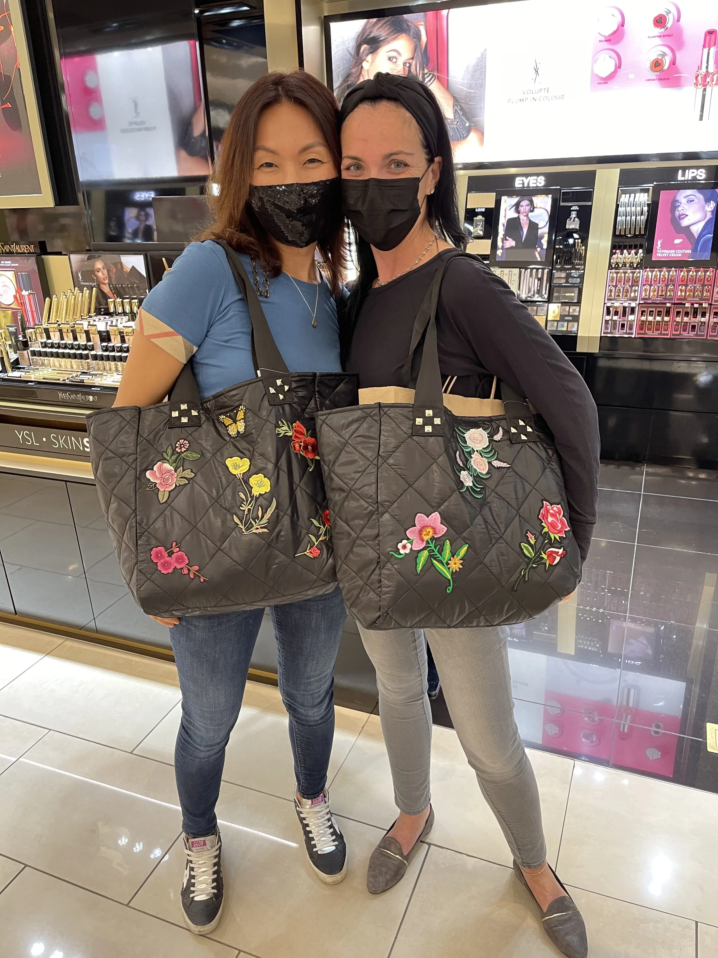 Creating custom pieces for clients brings Amanda so much joy (and itβs contagious)! When Saks Fifth Avenue asks her to customize tote bags in store-on multiple occasions, she jumps at the opportunity. She arrives equipped with the appropriate embellishments in hand to create a unique, bespoke experiences for their cosmetics clients.
